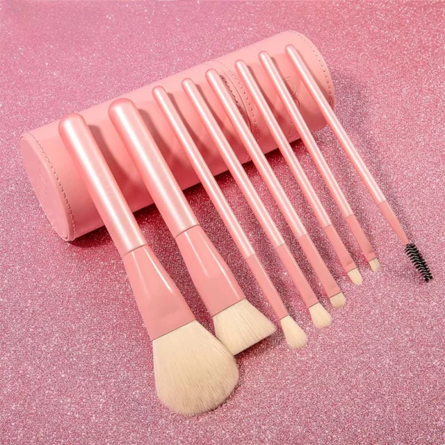 What sets the Professional 8-Piece Pink Makeup Brush Set apart is its combination of quality, versatility, and style. The high-quality synthetic hair ensures smooth application and is easy to clean, maintaining its shape and softness after each wash. The wooden handles provide a comfortable and sturdy grip, making precise application effortless. Plus, the stylish pink color and included brush holder add a touch of elegance to your makeup collection. This brush set is not only functional but also a beautiful addition to your beauty arsenal.